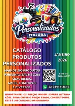 A Personalizados Itajuba é uma empresa que se dedica à personalização de produtos com sublimação e transfer adaptados às necessidades do cliente. Contamos com mais de 200 produtos para que o cliente possa escolher os seus designs e tê-los todos personalizados ao seu gosto ou necessidade.