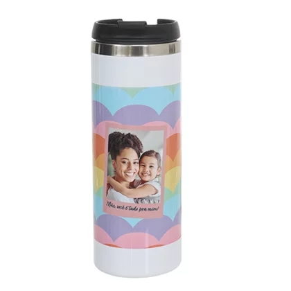 Um copo térmico para manter a bebida fria ou quente. Personalize ao seu gosto e design. Muito prático.