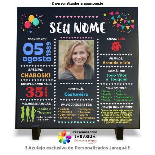 AZULEJO AMIGA(O) ANIVERSÁRIO FOTO E DADOS