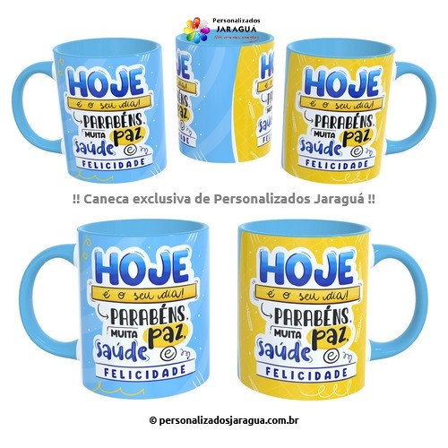 CANECA ANIVERSÁRIO PAZ E SAÚDE AZUL 325 ml