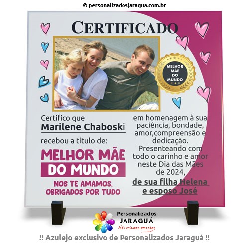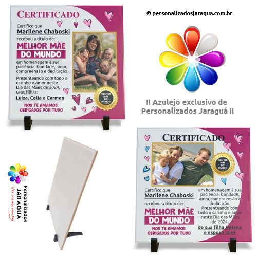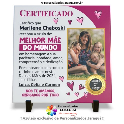 AZULEJO MÃE CERTIFICADO MELHOR MÃE DO MUNDO