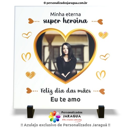 AZULEJO MÃE MINHA SUPER HERÓINA ETERNA CORAÇÃO